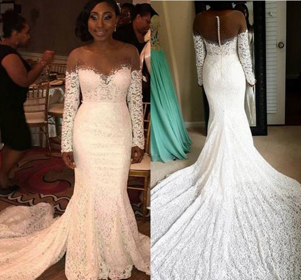 2018 New Fashion Elegant Wedding Dresses Skin Color Tulle Neck Long